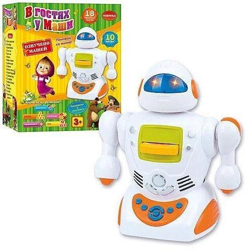 Замечательная игра-робот 1412 В гостях у Маши входит в серию фонографических игр, озвученных Машей из мультфильма Маша и Медведь. Оригинальный робот будет помогать Вашему малышу в обучении.